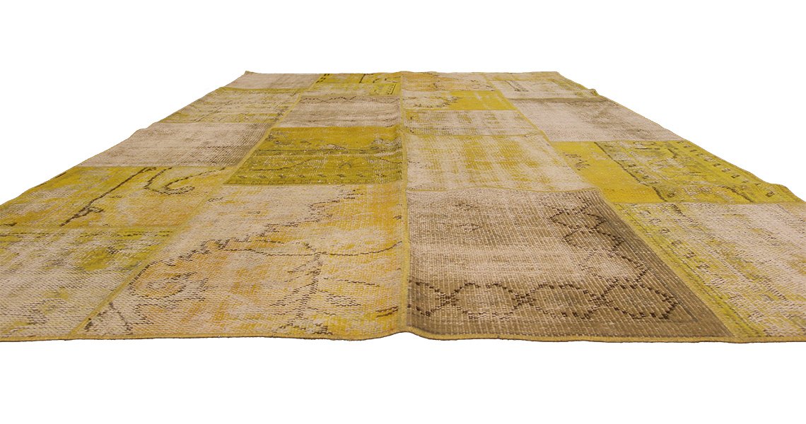 Patchwork carpets are made from handmade vintage carpets from Turkey, which are painted with monochromatic plant colors of various ranges.