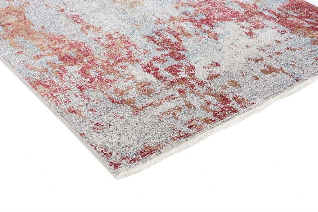 - Rich Color Fusion: The rug showcases a striking array of colors, with soft gray serving as a backdrop to vivid splashes of coral and subtle hints of blue. This color combination creates a lively yet refined aesthetic that can enhance any modern decor.