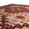 Variations in soumak structures happen when the direction of wrapping is altered, or when the weaver outlines her design in diagonal directions. Sometimes the yarn segments are offset; other times the structure is reversed, so that the usual back side serves instead as the front. There are few design restrictions with these techniques, and so motifs have often been borrowed from other weaving traditions. The hooked motif on the soumak Shahsevan mafrash (bedding bag) panel above is an old standard slit-tapestry kilim design.