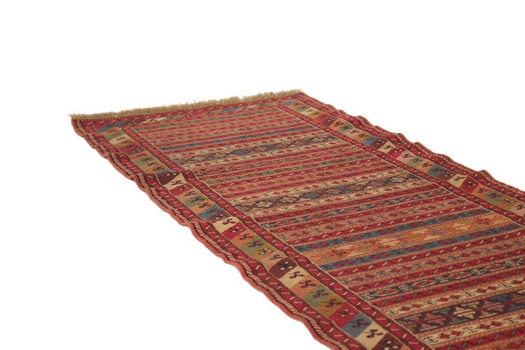 The best specimens of this rug called rahrah, just as the sumaks originally come from the Caucasus region, northwestern Iran and other regions of central asia. Also Kurdish weavers in eastern Turkey have sometimes produced a few copies of soumak or rahrak kilim without plot.