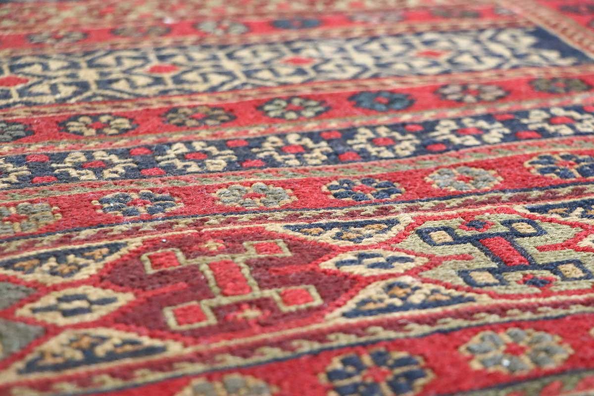Versatilidad y Estilo: El Kilim Soumak tradicional es excepcionalmente versátil. Ya sea que busques añadir un toque de elegancia rústica a un pasillo moderno o desees complementar un ambiente tradicional, este kilim se adapta perfectamente a diversas decoraciones y estilos de vida.